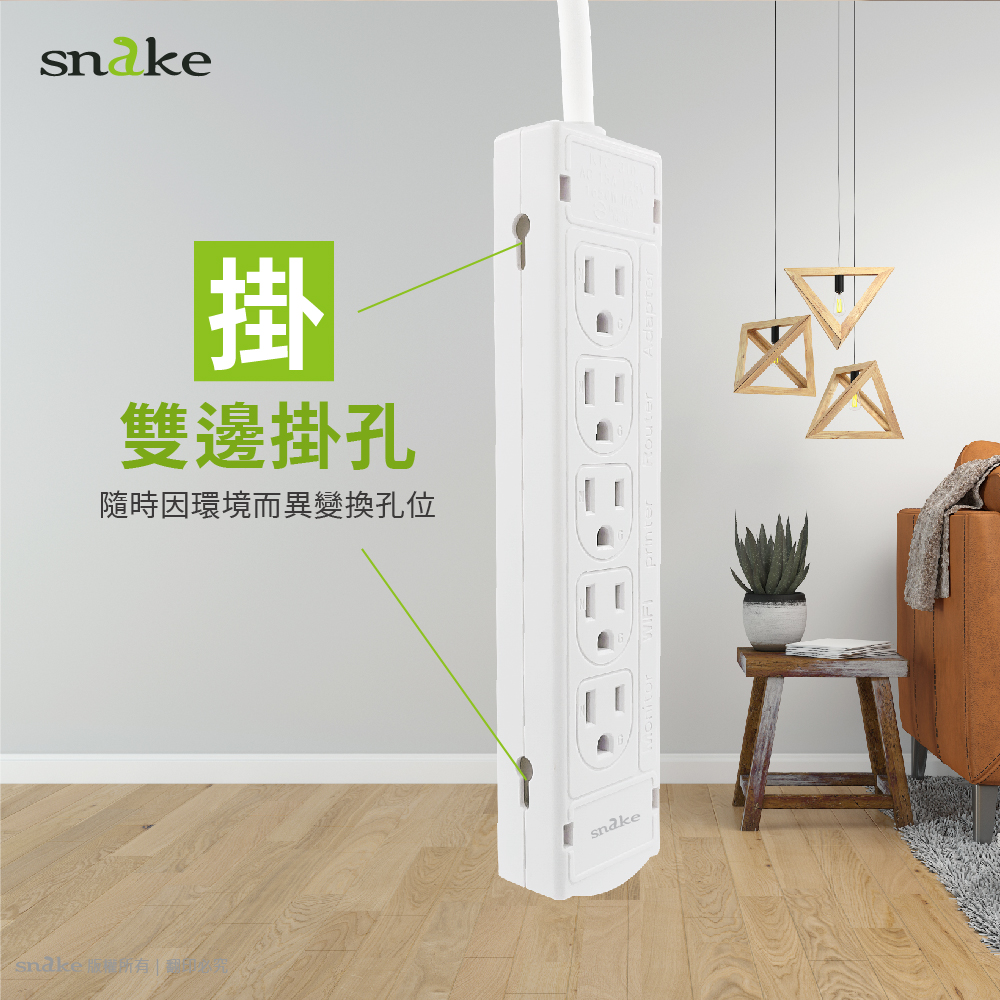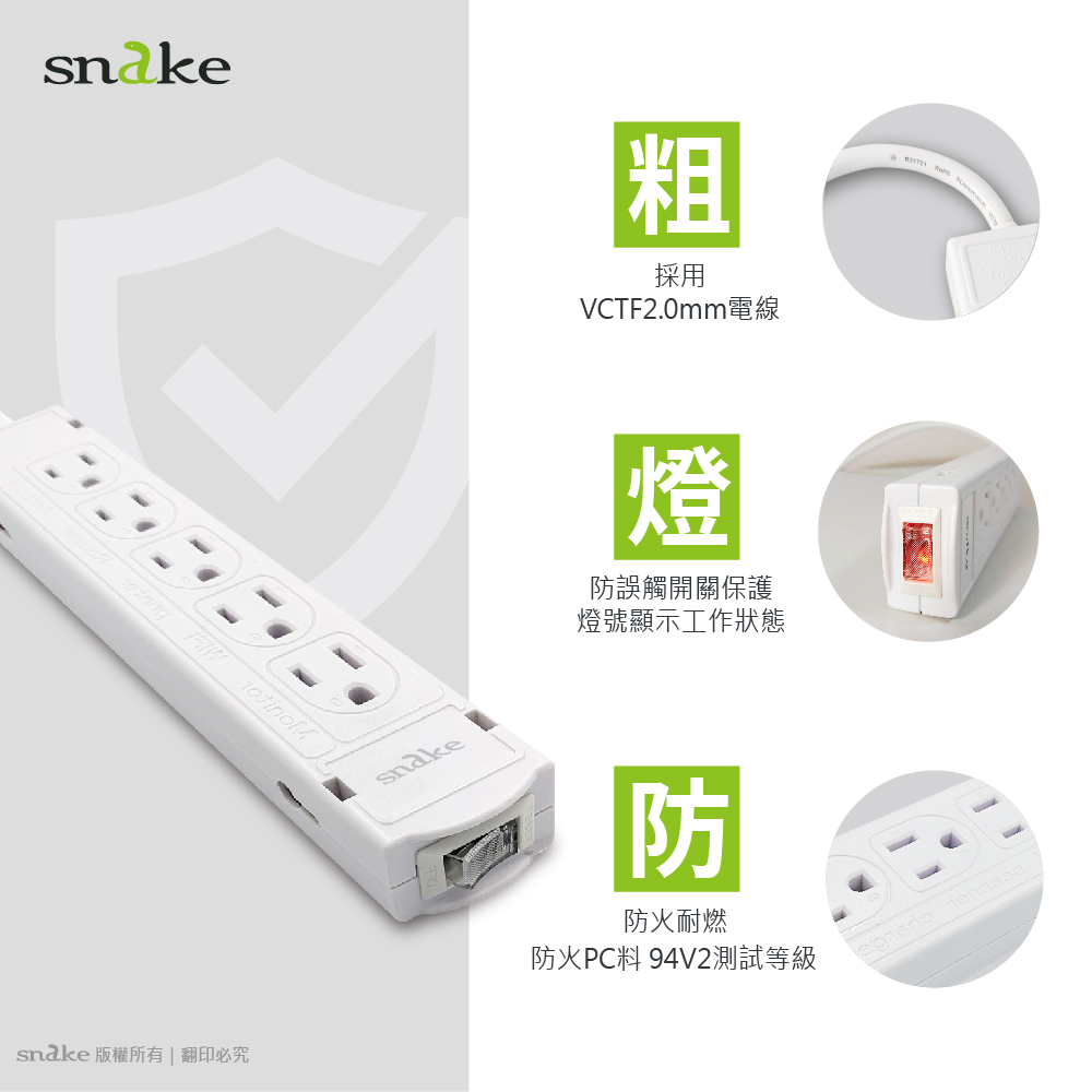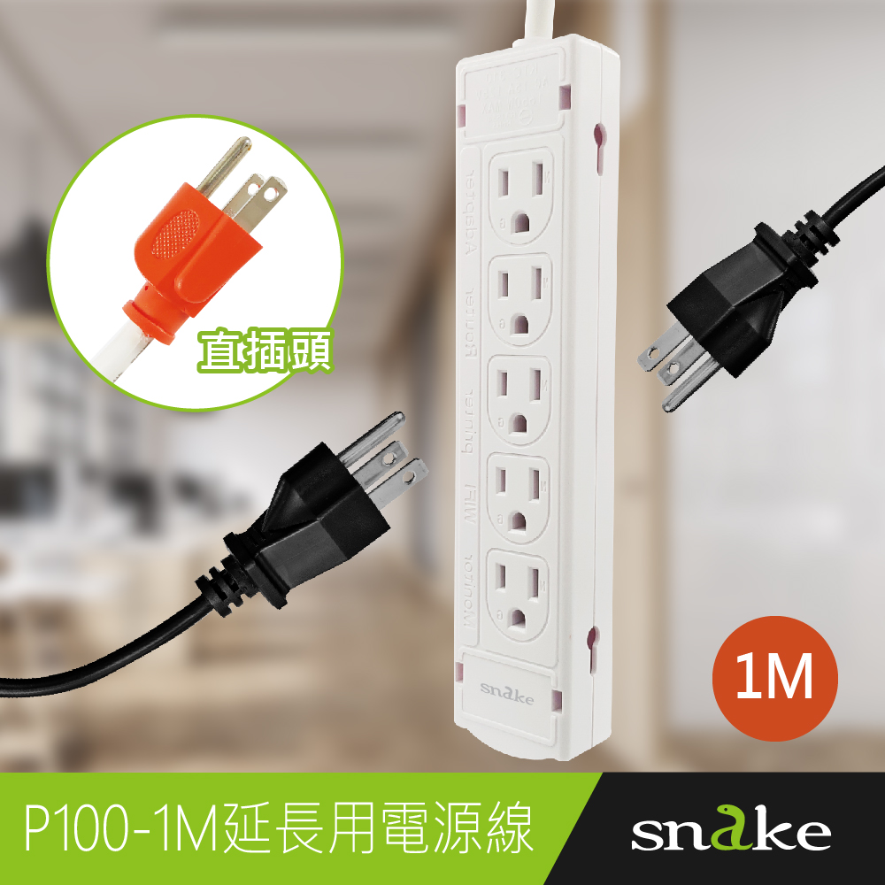 蛇吞象SNAKE P100 1開10插3孔1M直頭15A延長用電源線組