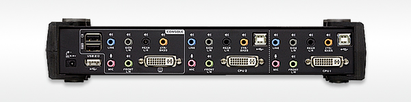 ‧ 2埠DVI KVMP多電腦切換器,支援USB 2.0與7.1立體環繞聲道