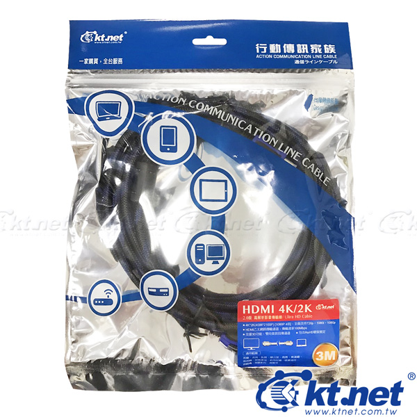 KTNET-HDMI公對公 4Kx2K 高解析影音訊號線2.0版-3米