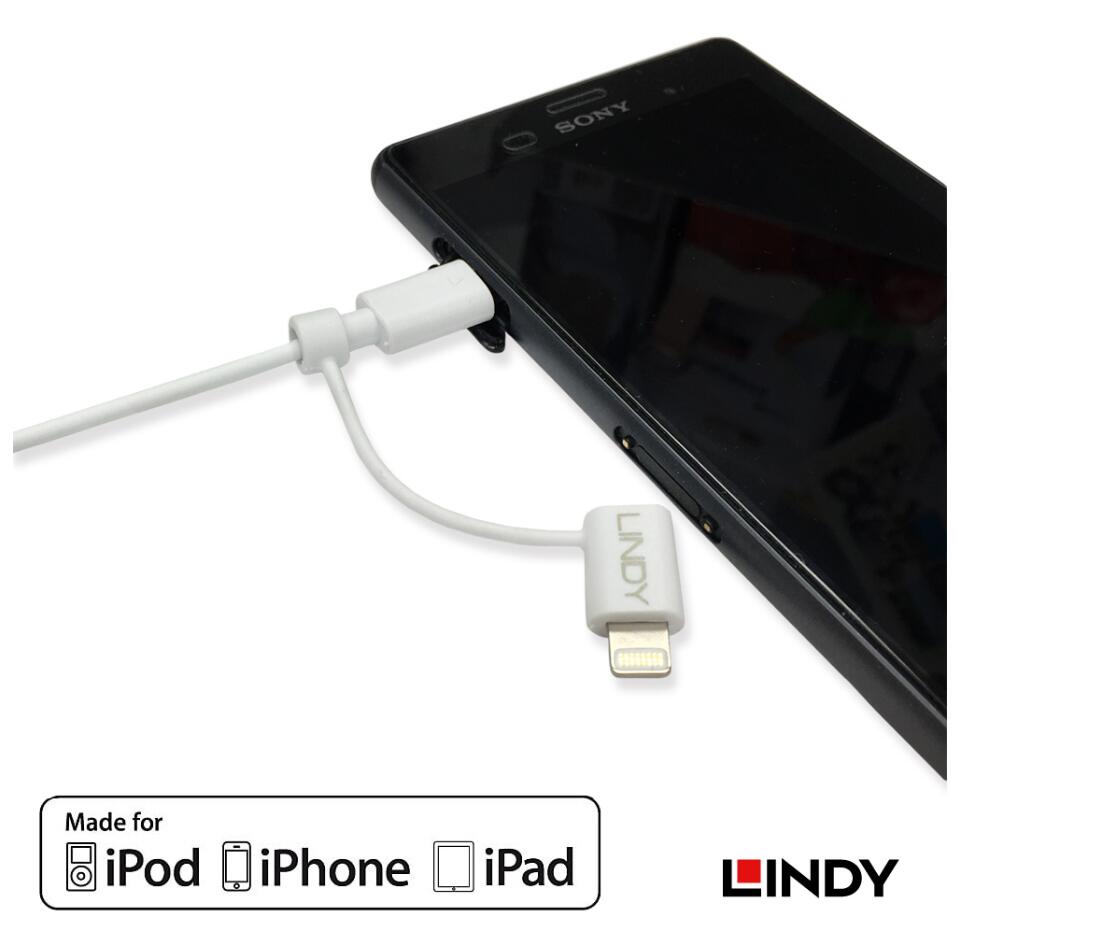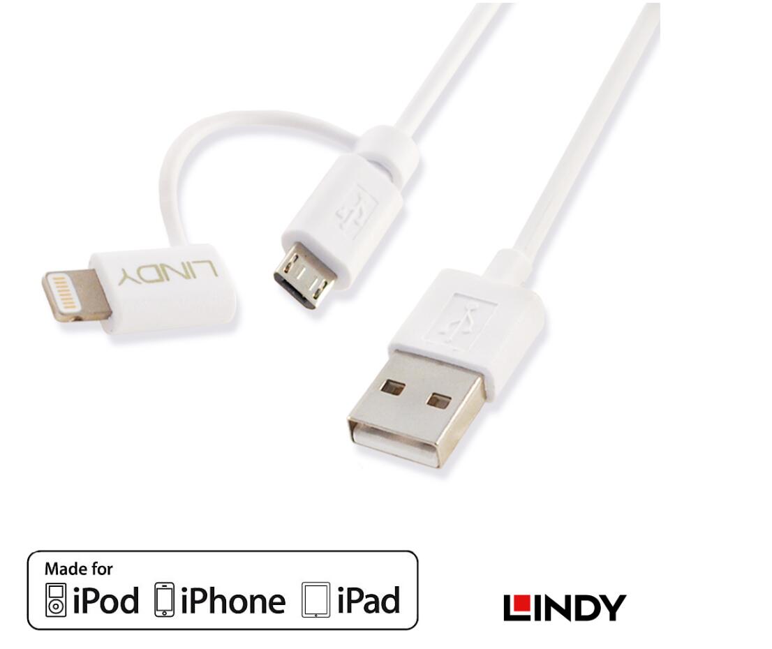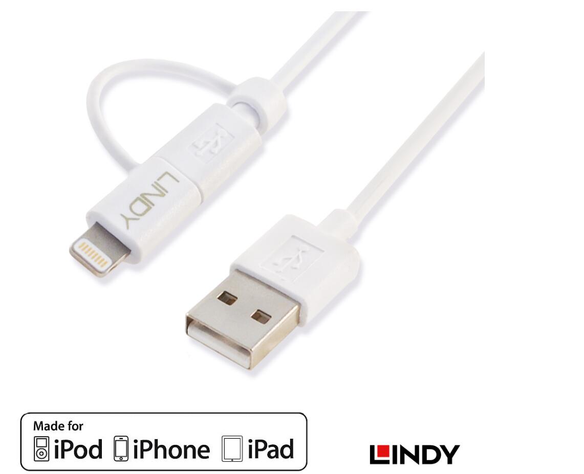 LINDY 林帝 雙接頭 APPLE LIGHTNING & MICRO-B TO USB傳輸充電線, 1M