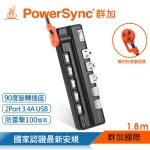 MIG明家 3孔4插4開15A防雷擊延長線(L型插頭)-1.8米 ◆擴大插座間距 適用變壓器