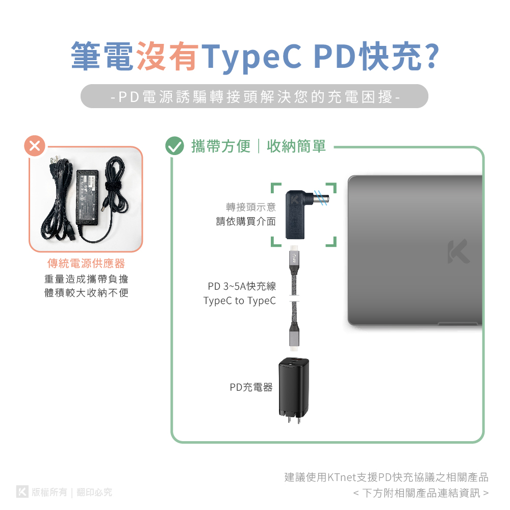 4.搭配PD電源頭可為Acer.Asus.HP.聯想Lenovo.Dell.東芝.MSI等供電