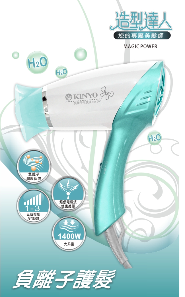 【KINYO】負離子護髮吹風機 KH-265◆負離子保濕技術◆柔和控溫◆冷/溫/熱三段控制
