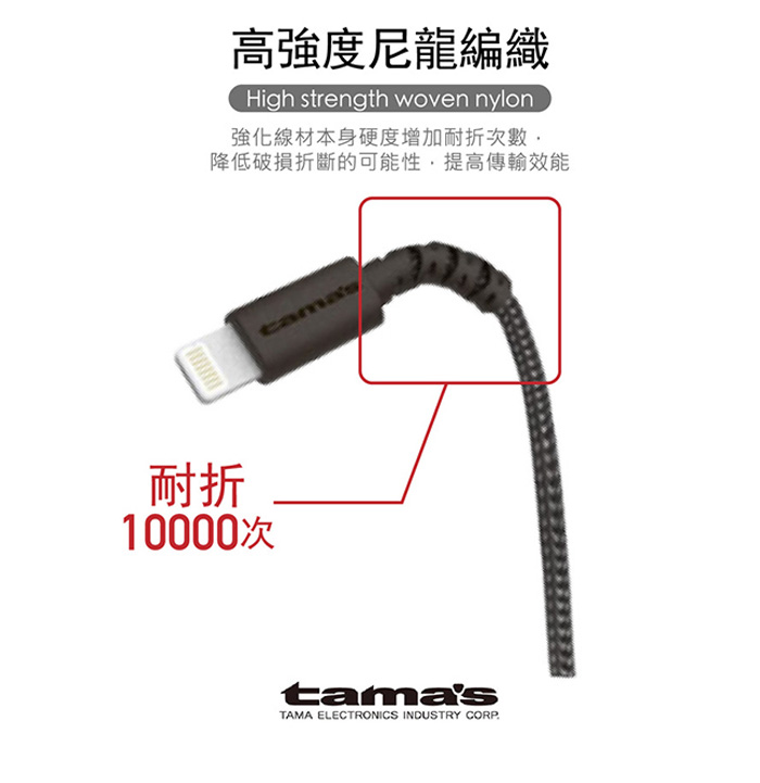 線材採用美國杜邦軍用材質抗拉抗扯,接頭SR加強抗彎曲