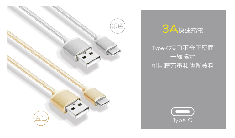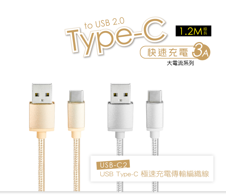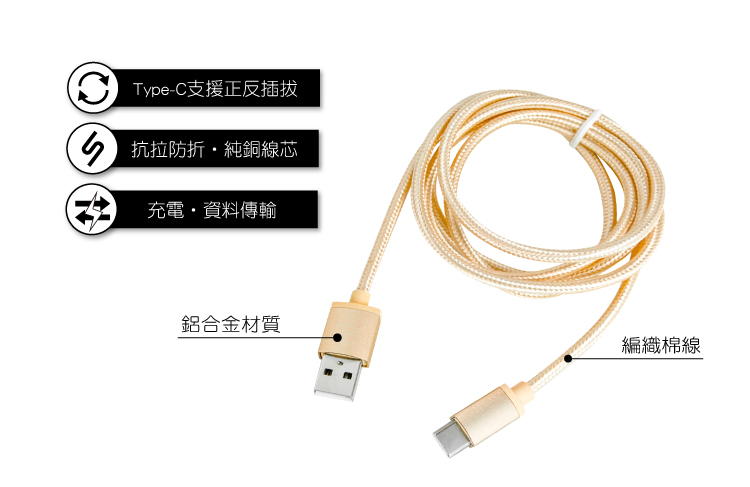 【KINYO】USB Type-C 極速充電傳輸編織線 USB-C2