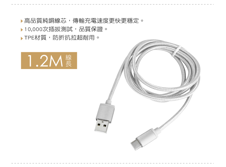 高品質純銅線芯,抗拉防折、傳輸充電速度更快更穩定。