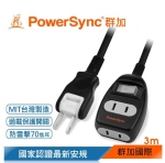群加 PowerSync 2P 一開二插防雷擊延長線/台灣製造/黑色/3m(T22W0030)